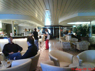 On our way back to stockholm. Sitting in the piano bar drinking champagne.