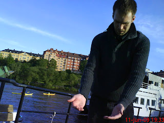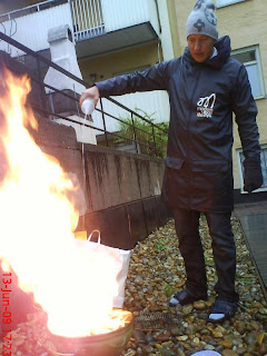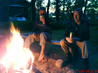 At a friends place. Sitting next to a fire after a diving competition. :)